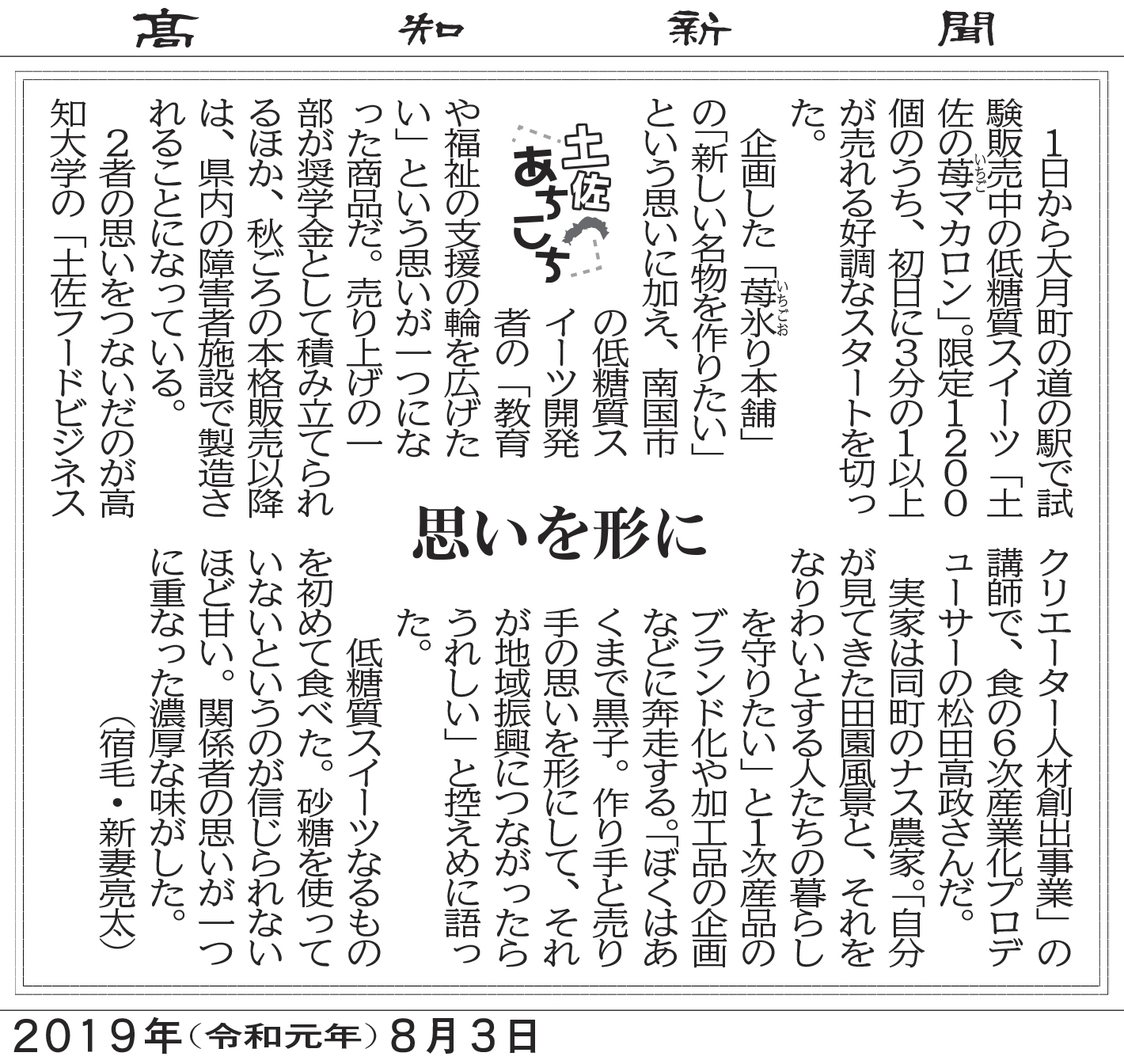 高知新聞のコラム「土佐あちこち」に記事が掲載されました。